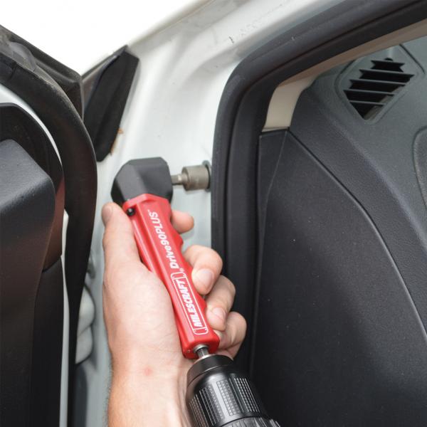 -Simplemente inserte el Drive90PLUS en el portabrocas de su taladro para acceder a los espacios difíciles de alcanzar y apretados.