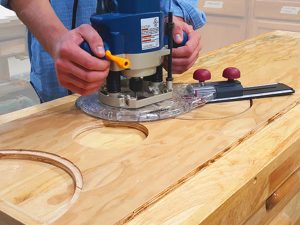 - La base desplazada de 13″ brinda mayor estabilidad al terminar los bordes de su pieza de trabajo usando su enrutador